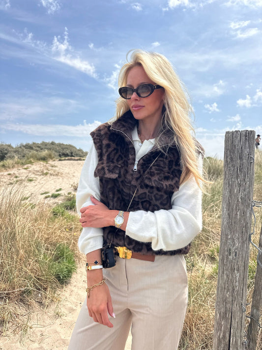 CHICAGO Bodywarmer By Mei-Li -- Leopard (S/M - laatste stuk)