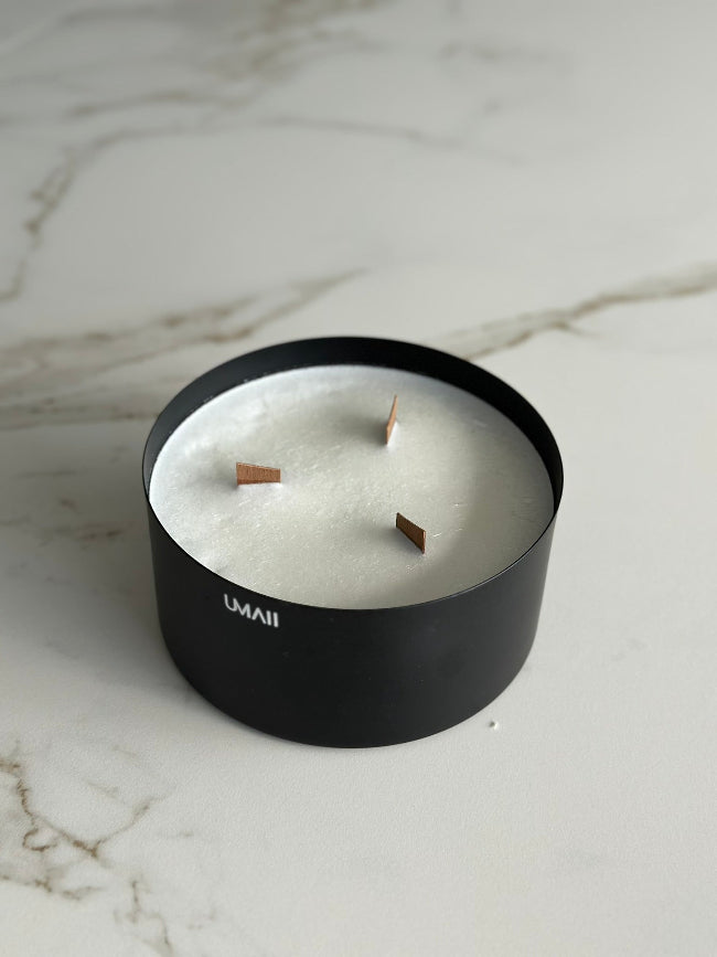 Geurloze handgemaakte kaarsen in België van olijfwas in gerecycleerde metalen bowls.